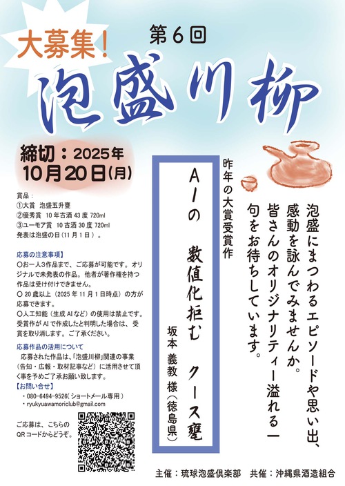 泡盛にまつわる楽しいエピソードや思い出、感動を詠んでみませんか。