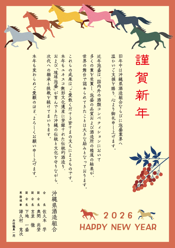 旧年中は沖縄県酒造組合ならびに泡盛業界へ温かいご支援を賜り、 心より御礼申し上げます。